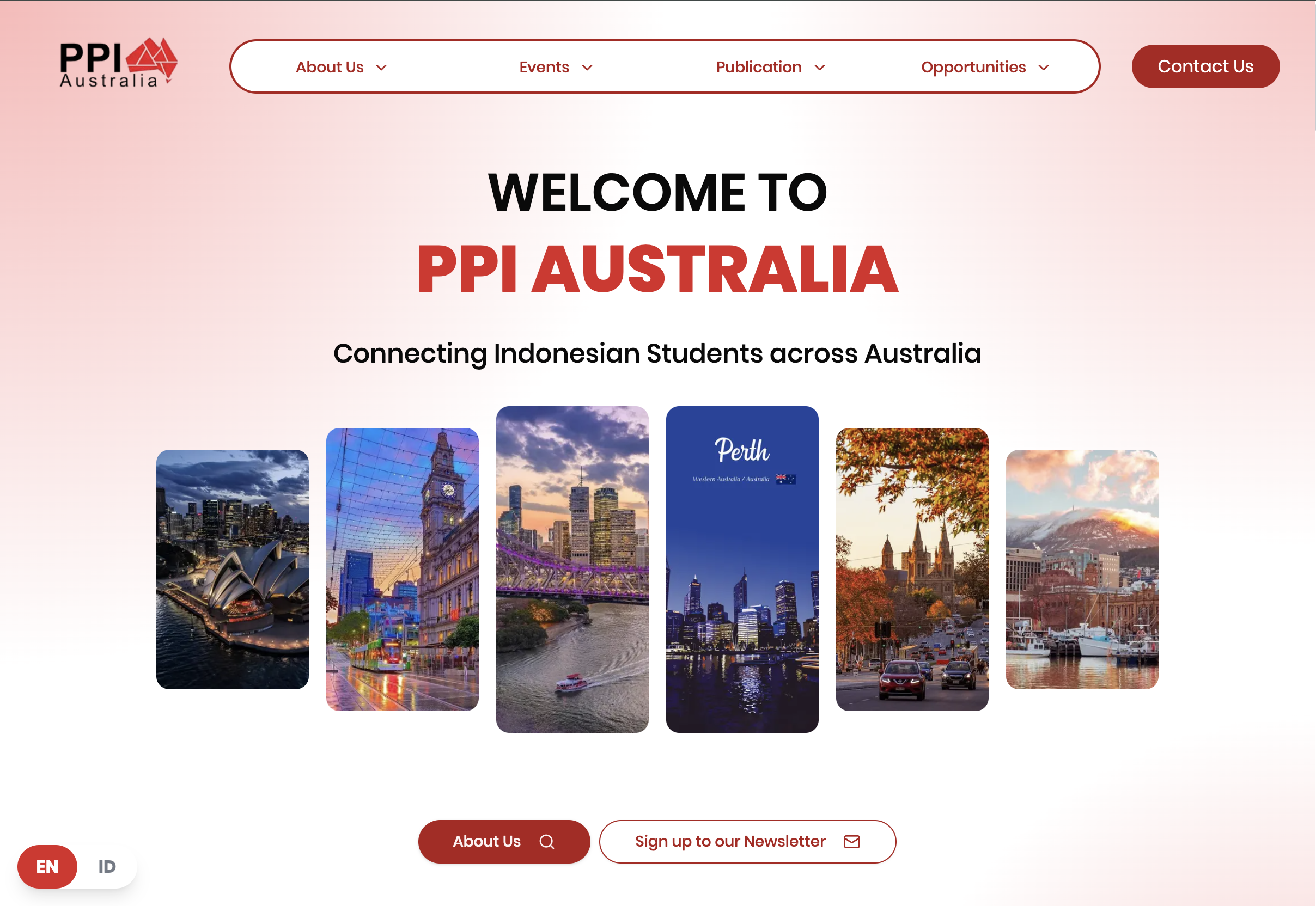 Perhimpunan Pelajar Indonesia Australia (PPIA) represents Indonesian student associations across Australia. The national website is often the first point of contact for students exploring scholarships, state chapters, testimonials, events, and life in Australia.